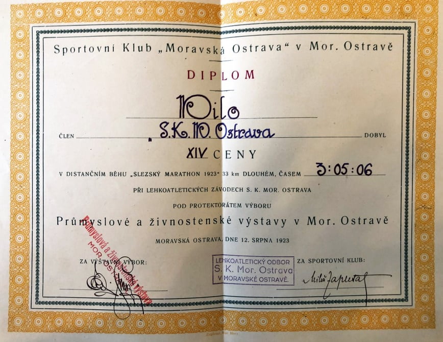 Velkým úspěchem Miloše Zapletala byla organizace Slezského marathonu, který se běžel v roce 1923 z Opavy do Ostravy. Historii tohoto prvního maratonu na Ostravsku si můžeš přečíst v mé eknize Slezský marathon 1923. Tento první maraton ve Slezsku si 12.8.2023 poběžím připomenout i já – přesně po 100 letech vyběhnu v 16:36 hod. od vstupu do divadla v Opavě. Přidat se můžeš i ty v rámci projektu 100 – Pocta maratoncům.