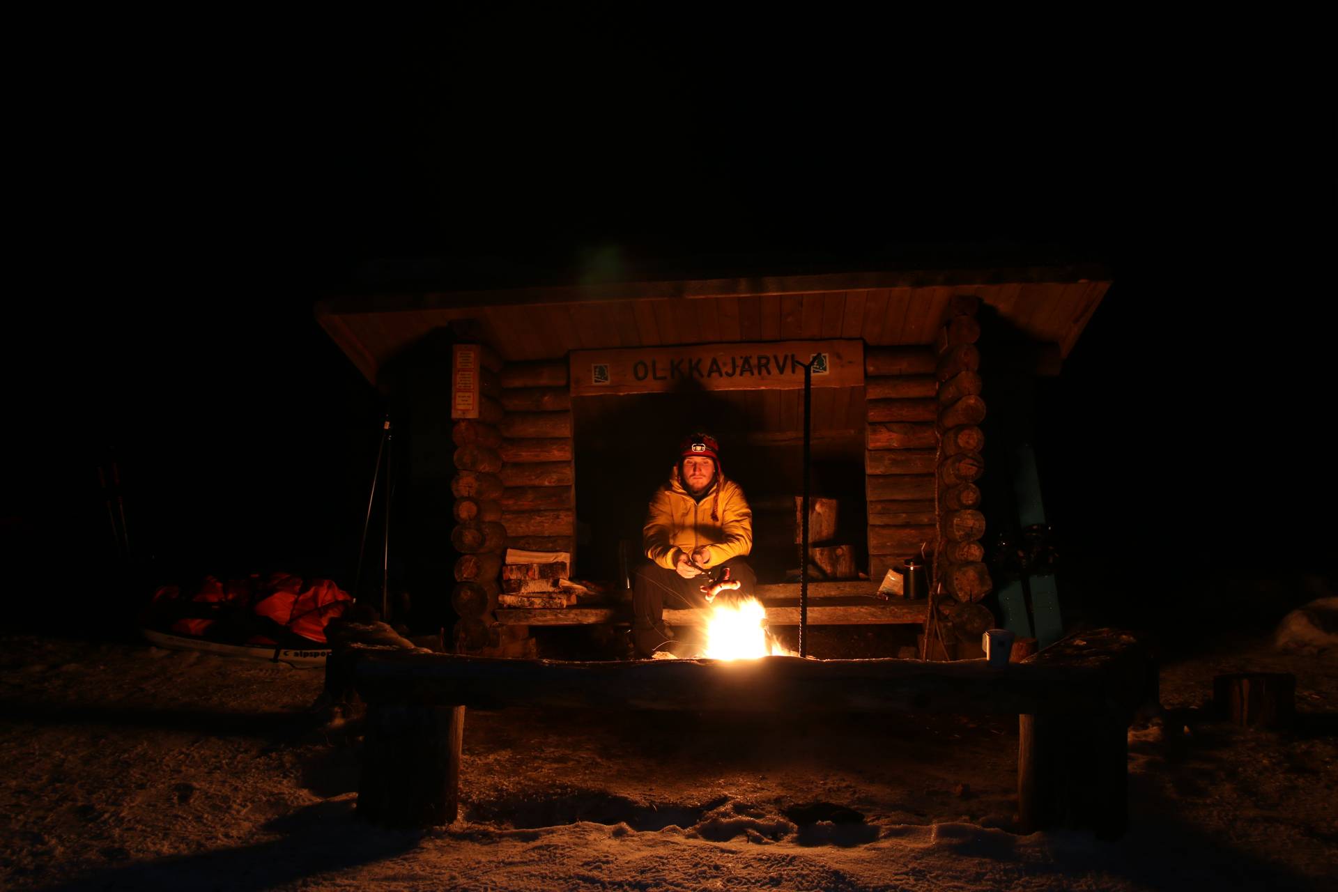 Jen co přicházíme k jednomu z těchto srubů, vychází nám naproti paní, která jíž od pohledu vypadá míle pro svůj decentní a hřejivý úsměv. Zdraví nás plynulou angličtinou a vykládá příběhy ostatních, co tu kolem jejího srubu prošli. Včera večer sem k ní dorazil Antonio. Měl rozseknutou a krvavou. bradu. Zavolal si odtud taxíka a odjel do nemocnice na šití. Prý se mu to večer při sjíždění kopce moc rozjelo a upadl. Do obličeje mu pak narazily jeho sáňky naložené na 70 kilo, které měl jako jediný z nás k sobě přichycené provazem namísto tažných tyčí. Jestli se na trať vrátí, se neví. Později večer pak dorazil Petr. Komunikace s ním prý byla obtížnější kvůli jazykové bariéře, ale poradili si s pomocí překladače. Spal na tomto místě pod venkovní pergolou a odešel brzy ráno, přibližně dvě hodiny před námi.