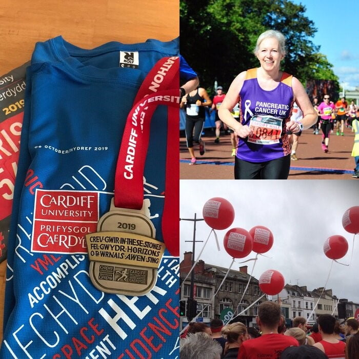 By mile ten, I’m flagging, but I know I’m on the homeward stretch. ‚Just a parkrun to go,‘ I tell myself, breaking it to make it. Suddenly I hear a familiar voice calling my name; it’s my dear friend and Thursday Girl, Ann! Ann and her husband, Keith are there to support their son, Dan, who’s way ahead of me, but, gosh, seeing them smiling and cheering me on gives me the most enormous boost! I cross the line in a tad over 2:05:00, my second-best Cardiff time. Later, I learn that two young men lost their lives at the end of the race, the first fatalities in its history.