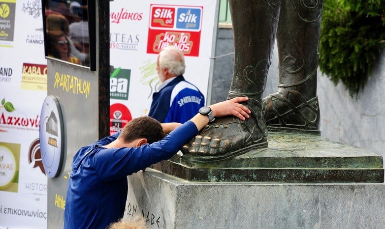 Právě Spartathlonem, tedy závodem o celkové délce 246km tato kniha začíná. Trasa závodu vede ve stopách běžeckého posla Feidippidése, který údajně v roce 490 před n.l. doběhl z města Marathon do Athén, vyřídil vzkaz o vítězství řeckých vojsk nad peršany a padl mrtev k zemi. Tento chlapík však zvládal daleko větší štace. Před osudným během běžel z Athén do Sparty požádat tento městský stát o vojenskou pomoc (více o historii v knize Dejiny behania). Vzpomínkou na tuto událost je dnes právě Spartathlon, kterým vždy v září žije celé Řecko. Minimálně to od Athén na jih (pozn. Za přečtení stojí kniha nejen o Spartathlonu s názvem To (ne)dáš! od Konstantina Wiesnera – pohled českého běžce)